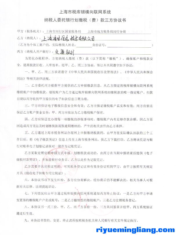 上海闵行地区办理流程: 1.到税务大厅填写“委托扣税”协议,一式三份,税费盖章一份给你带走,就是平时买发票的地方 2.到银行办理相关手续,银行盖章后收一份,二份给你带走, 3.拿银行盖章的2份到税务,税费盖 ...